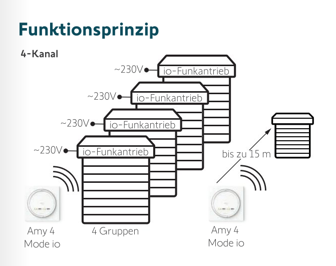 4-Kanal Funkwandsender in modernem Design zur Ansteuerung von io-Antrieben bzw. io-Empfängern, wie z.B. Rollläden, Außenjalousien oder dimmbares Licht. Es können bis zu vier Produkte bzw. Produktgruppen bedient werden.