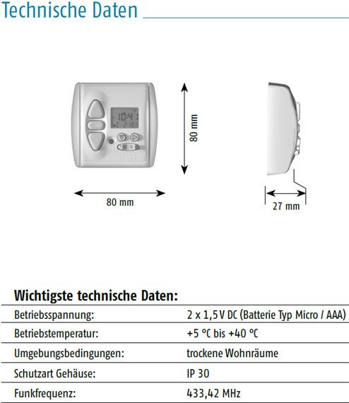 die Funkprogrammschaltuhr mit Helligkeitsautomatik Automatische (zeit- und helligkeitsabhängig) und manuelle Steuerung eines oder mehrerer Antriebe per Funk.