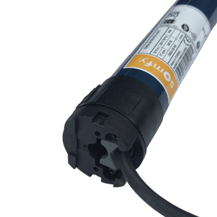Elektronischer, bidirektionaler Funkeinsteckantrieb Somfy Sunea 50 NHK io mit integriertem Anschluss für eine Notfall-KurbelbedienungInteraktives Funkantriebssystem mit Rü...